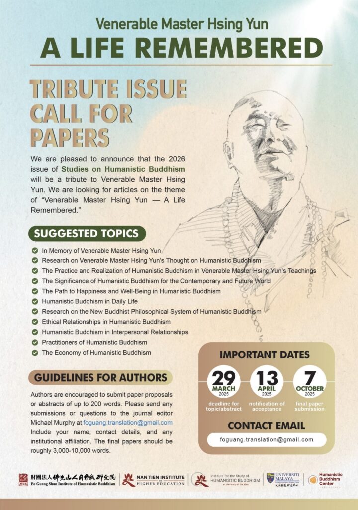 Call for Papers: A Life Remembered—Tribute Issue to Venerable Master Hsing Yun】